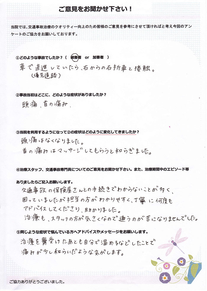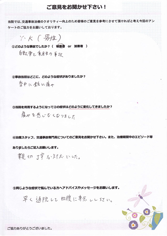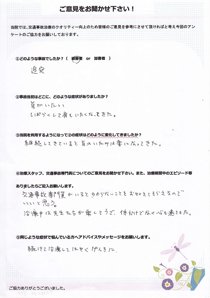 他院ではほとんどカウンセリングもないまますぐ終わってしまう様な感じだったのですが、きちんと患者の気持ちによりそったケアをしていただけて、こちらに通って本当に良かったと思っています。