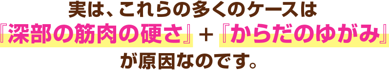 『深部の筋肉』が固くなっていて、『背骨のゆがみ』が起こっていることが原因です。